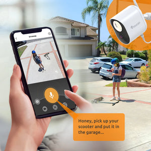 Notaðu tvíhliða tal til að tala í gegnum myndavélina með því að nota ókeypis Toucan Smart Home appið, notaðu fyrirfram skráð sjálfvirk svör til að láta einhvern vita að þú sért að horfa, jafnvel kveiktu á 110dB sírenu og blikkandi ljósi frá appinu.